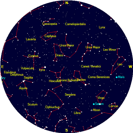 En ce moment, Saturne est visible dans le ciel du matin. A 7 heures du matin, dirige ton regard vers le sud (éventuellement, tu peux t’aider d’une petite boussole) : l’étoile bien brillante au-dessus de l’horizon, c’est Saturne. Juste à sa droite se trouve l’étoile Spica. Et au-dessus la grosse étoile est Arcturus. Je te joins en pièce attachée des petites cartes qui t’en diront bien plus long qu’un grand discours. En cas d’échec, tu pourras te rattraper le 12 et le 13 février, lorsque la Lune te montrera le chemin puisqu’elle passera juste en-dessous de Saturne et de Spica. Bonne chasse Solwen !