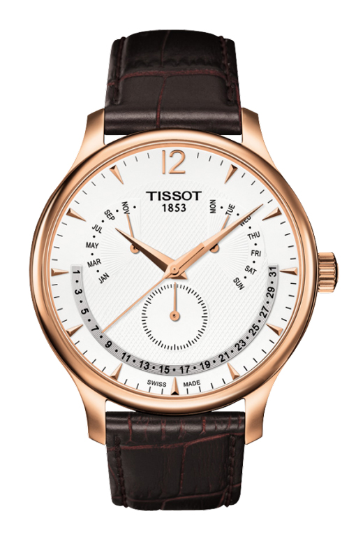 Sur cette montre calendrier perpétuel, on retrouve à droite, les noms des jours en anglais qui nomment les planètes