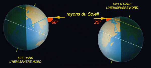 --- c’est cet angle qui explique les différences de chaleur entre l’hiver et l’été, comme te le montre le troisième schéma que je te propose :