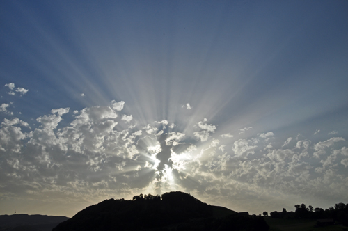 Les rayons sont des effets optiques météo. Ils sont seulement visibles lors le passage de nuages, ou dans une forêt humide.