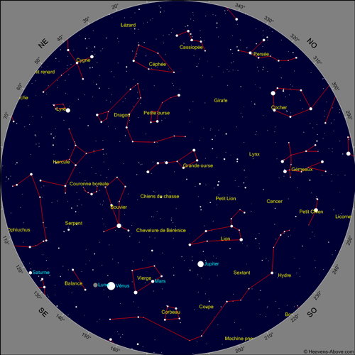 Ce matin , un peu avant huit heures , j’ai remarqué de part et d’autre du croissant de Lune , à peu près à distance égale , deux points très brillants qui ressemblaient à des étoiles , mais je n’ai pas vu d’autres étoiles . Etait-ce des planètes et si oui lesquelles , svpl ?