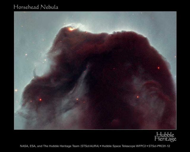 En astronomie, nous utilisons le terme « poussière interstellaire » pour parler de ce que tu nommes poussière d’étoile. C’est simplement par ressemblance avec notre poussière terrestre comme celle que tu peux trouver dans ta salle de classe qu’on l’appelle ainsi. Et c’est vraiment de la poussière. Pour connaître la taille d’une poussière interstellaire, il va te falloir utiliser des unités de mesures un peu inhabituelles. Tu connais certainement le mètre et ses premiers sous multiples comme le décimètre, le centimètre et le millimètre. Pour mesurer de la poussière, il faut des unités encore plus petites que le millimètre (mm) : on va d’abord diviser le mm en mille parties, ce sera le micromètre (μm), puis on va ensuite encore diviser le μm en mille autres parties, ce sera le nanomètre (nm). La taille d’un grain de poussière interstellaire varie de quelques nanomètres jusqu’à un dixième de micromètre. C’est donc tout petit, petit : un millard de fois plus petit qu’un mètre. Même si elle est minuscule, il est possible de « voir » cette poussière d’étoile quand elle est un peu plus dense et sombre comme dans la nébuleuse de la Tête de cheval. En quelque sorte, la poussière interstellaire masque en partie les objets célestes comme un filtre.